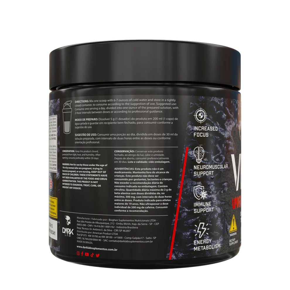 Sinta o poder do pré-treino mais insano do mercado. Venom da Dark Lab foi desenvolvido com uma combinação estratégica de ingredientes ativos que potencializam sua performance, promovem explosão muscular, aumentam o foco mental e reduzem a fadiga desde a primeira dose.